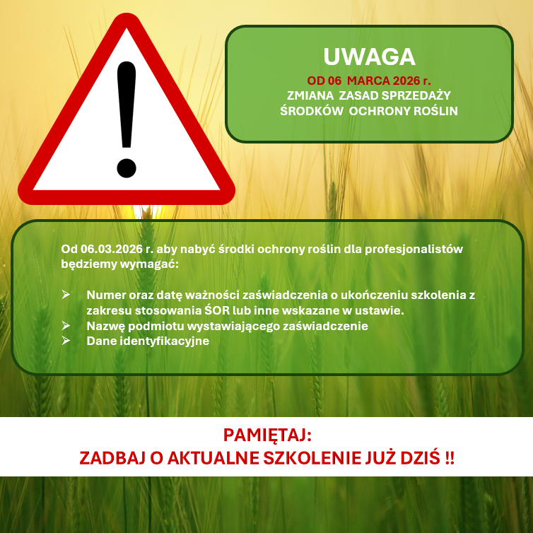 KUPUJĄC ŚRODKI OCHRONY ROŚLIN PAMIĘTAJ: Ze środków ochrony roślin należy korzystać z zachowaniem