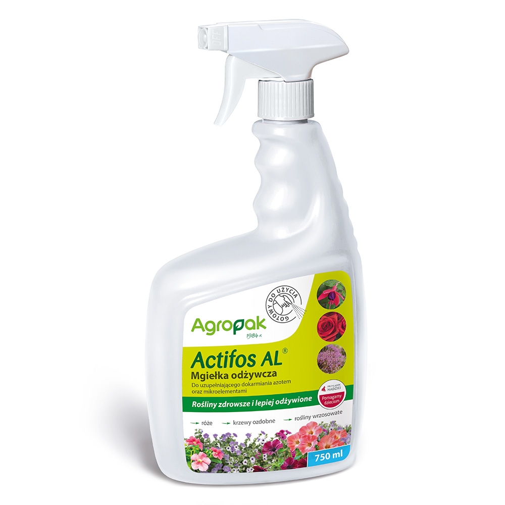 Gotowy do użycia, płynny, dolistny nawóz mineralny. Stosowanie nawozu, oprócz dodatkowego zaopatrzenia roślin w azot i mikroelementy, sprzyja podnoszeniu zdrowotności upraw i w wielu przypadkach pozwala ograniczyć stosowanie tradycyjnych fungicydów. Nawozu Actifos AL nie należy mieszać z innymi nawozami lub środkami ochrony roślin.