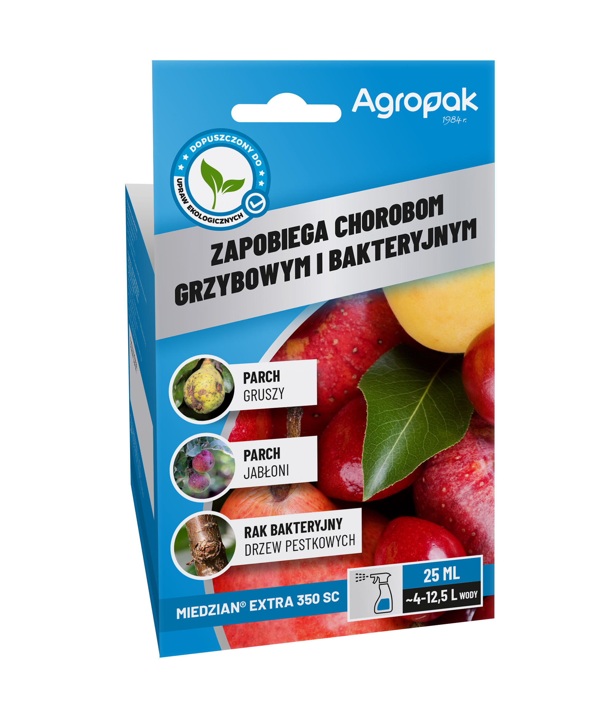 Decyzją Instytutu Ochrony Roślin - Państwowy Instytut Badawczy w Poznaniu, Miedzian Extra 350 SC został zakwalifikowany do stosowania w rolnictwie ekologicznym.