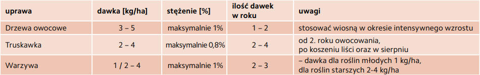 Zalecenie dla warzywnictwa i sadownictwa: