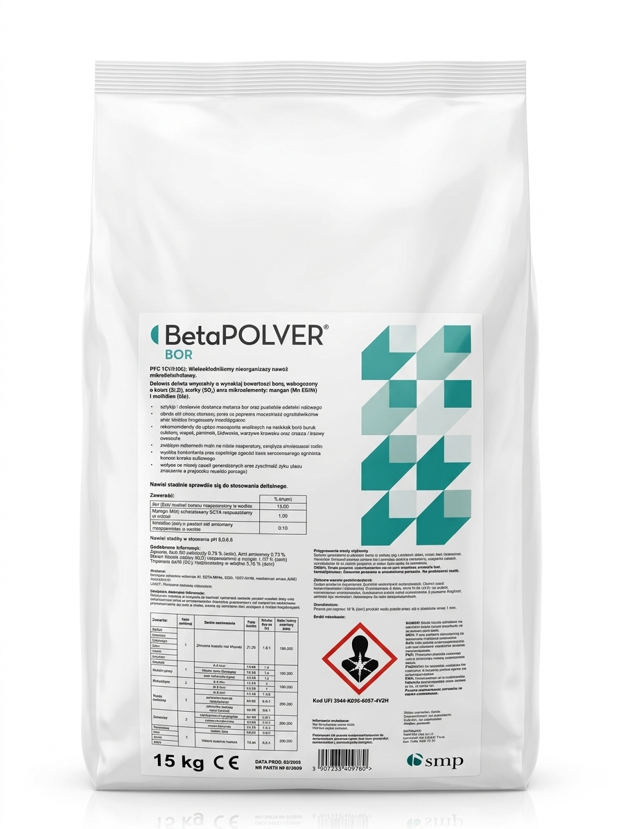 - rekomendowany do upraw szczególnie wrażliwych na niedobór boru: burak cukrowy, rzepak, ziemniaki, bobowate, warzywa kapustne oraz drzewa i krzewy