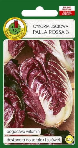 Cykoria liściowa Palla Rossa 3 to odmiana wczesna, okres wegetacji wynosi 60-70 dni. Typ cykorii do użytkowania bez pędzenia. Rośliny tworzą zwarte główki kształtu kulistego. Liście przebarwiają się na czerwono w miarę dorastania zbitej główki. Pikantny smak powoduje, że jest wyśmienitym dodatkiem do sałatek i surówek.