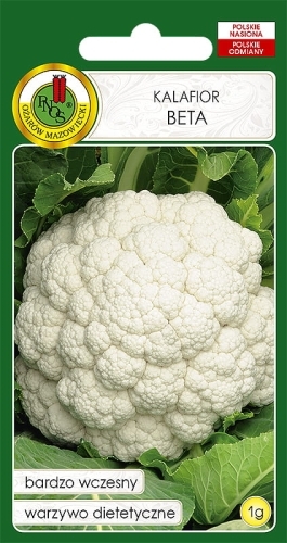 Kalafior Beta to bardzo wczesna odmiana o okresie wegetacji 58-63dni, idealnie nadaje się na zbiór wiosenny. Odmiana Beta wytwarza dorodne i jędrne róże o delikatnie pofałdowanej powierzchni. Mają śnieżnobiały kolor i co najważniejsze - nie wykazują tendencji do żółknięcia ani fioletowienia. Cechują się wysokimi walorami smakowymi. Rośliny o pokroju pół wzniesionym, osiągają wysokość 45 do 60cm, może znosić niskie temperatury.