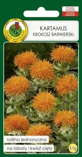 Kartamus jest wysoką, jednoroczną rośliną o miękkich liściach, kolczasto ząbkowanych. Kwiaty najczęściej pomarańczowoczerwone (czasami występuje w kolorach białym i żółtym), zebrane w duże, główkowate koszyczki.