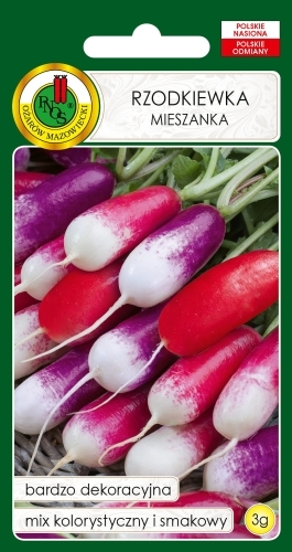 Mieszanka rzodkiewek podłużnych o różnym zabarwieniu. W mieszance znajdują się rzodkiewki czarne, różowe z białym końcem oraz fioletowe z białym końcem. Miąższ różni się pod względem smaku i skali intensywności. Rzodkiewka jest doskonała do spożywania na surowo, może być wyśmienitym dodatkiem do sałatek czy kanapek. Kolorowe rzodkiewki doskonale urozmaicą i wzbogacą każdą potrawę. Spożywanie rzodkiewek dobrze wpływa na procesy trawienne. Zawiera witaminy z grupy B, jest bogata w wapń, fosfor i magnez.
