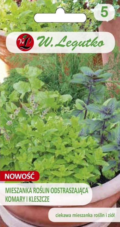 Kompozycja roślin wydzielających zapach, który działa odstraszająco na komary i kleszcze. Skupienie roślin z tej mieszanki na małych powierzchniach wokół miejsc, w których przebywamy najczęściej, pozwala zintensyfikować ich zapach, co w naturalny sposób ogranicza ataki tych owadów. Wybrane gatunki mają zastosowanie kulinarne, a ich uprawa jest bardzo prosta. Nasiona wysiewa się od marca do kwietnia pod osłonami lub w maju, rzutowo wprost do gruntu na słoneczne stanowiska.