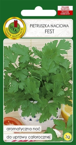 Pietruszka naciowa 'FEST' polecana do całorocznej uprawy, szybko odrastająca. Rośliny średnio wysokie, rozłożyste. Liście gładkie, zielone, o dość dużych rozmiarach i silnym aromacie. Okres wegetacji wynosi 75-90 dni (wiosną i latem) oraz 140-160 dni w uprawie jesiennej. Polecana do bezpośredniego spożycia, suszenia, mrożenia i pędzenia zimą. Wymaga gleby próchnicznej, zasobnej w wilgoć, nie zaskorupiającej się. Można ją pozostawić w gruncie na zimę. Dobrze się przechowuje.