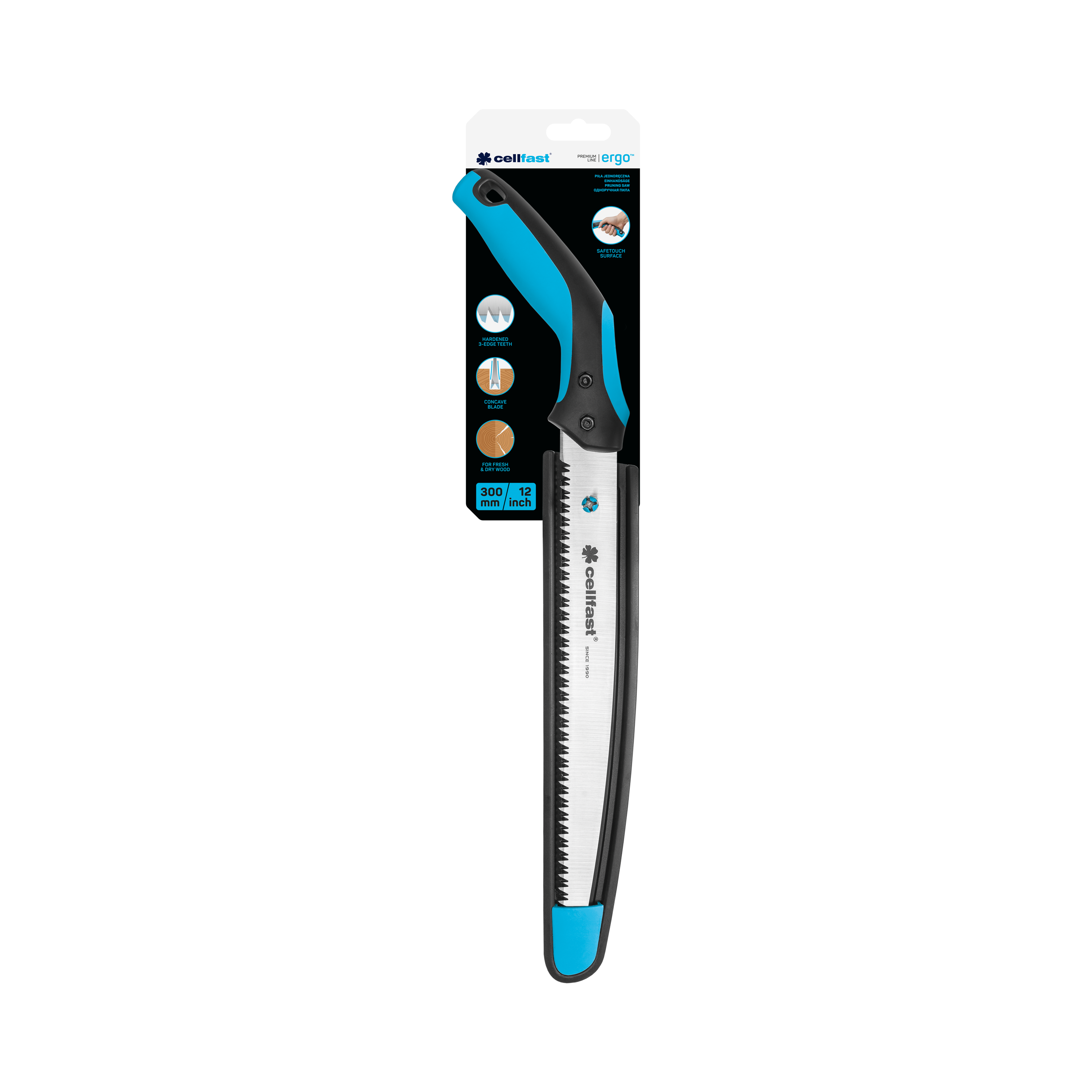 - ergonomiczna piła jednoręczna z ostrzem wykonanym z wysokiej jakości stali, przeznaczona do cięcia świeżych, suchych gałęzi i pędów