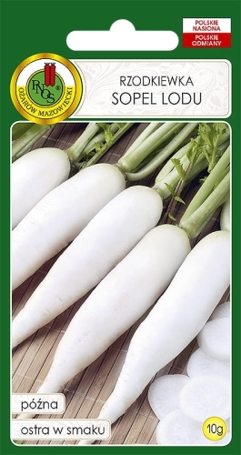 Przeznaczona do uprawy w polu w okresie jesiennym. Zgrubienie korzeniowe silnie wydłużone (10-12cm), wrzecionowate, barwy białej. Miąższ biały, szklisty, ostry w smaku, wykazuje małą skłonność do parcenia.