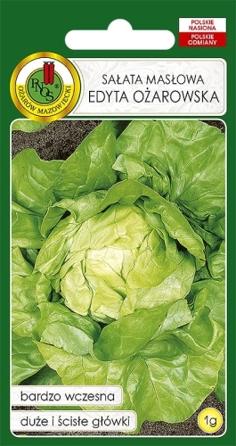 Sałata głowiasta masłowa. Przeznaczona do wczesnej uprawy w polu oraz w tunelach ogrzewanych i nieogrzewanych. Tworzy duże, ścisłe, kuliste główki o masie dochodzącej do 500g. Liście intensywnie wybarwione na zielono. Sałata Edyta Ożarowska oprócz plenności zbiorów jest odporna na 4 rasy mączniaka rzekomego. Dzięki temu jest jedną z najczęściej wybieranych odmian sałaty masłowej. Nasiona sałaty lubią glebę przepuszczalną i bogatą w próchnicę.