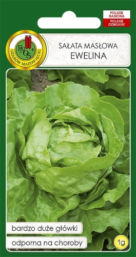Nasiona sałaty masłowej. Do uprawy polowej od wiosny do późnej jesieni, dająca bardzo wysoki i dobrej jakości plon handlowy. Obojętna na długość dnia, nie wykazuje tendencji do wybijania w pędy kwiatostanowe, nawet przy wysokiej temperaturze. Tworzy bardzo ładne, duże główki o pokroju wzniesionym. Główki osiągają masę ok. 400-600g, a w korzystnych warunkach nawet 700-800g. Liście są prawie gładkie, wydłużone u nasady, zielone, niezwykle smaczne. Odmiana Ewelina jest odporna na 4 rasy mączniaka rzekomego.